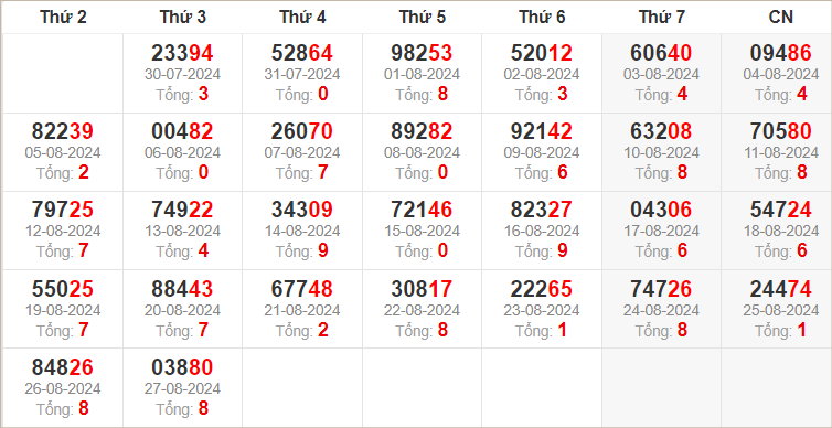 Dàn 20 số trong ngày 28/8
