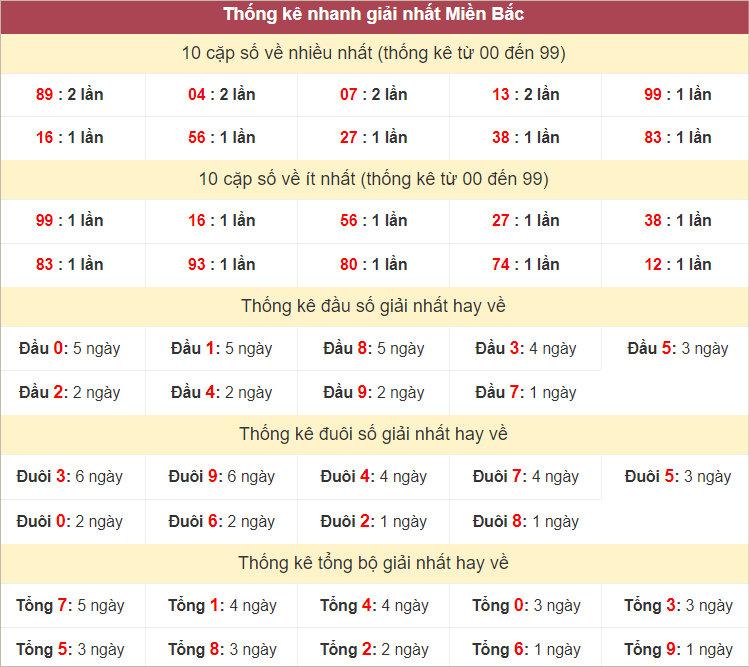 Thống kê hai số cuối giải đặc biệt miền Bắc ngày 28/8