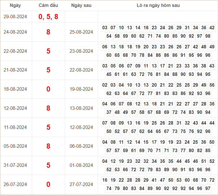 Dàn lô hôm nay miền Bắc bất bại ngày 30/8/2024