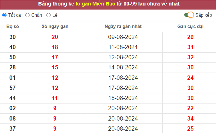 ⭐️Thống kê lô gan XSMB lâu ra nhất: 30 – 40 – 50 – 28 – 01