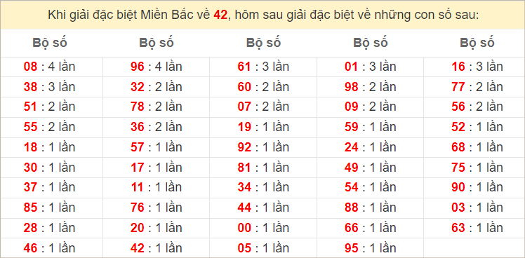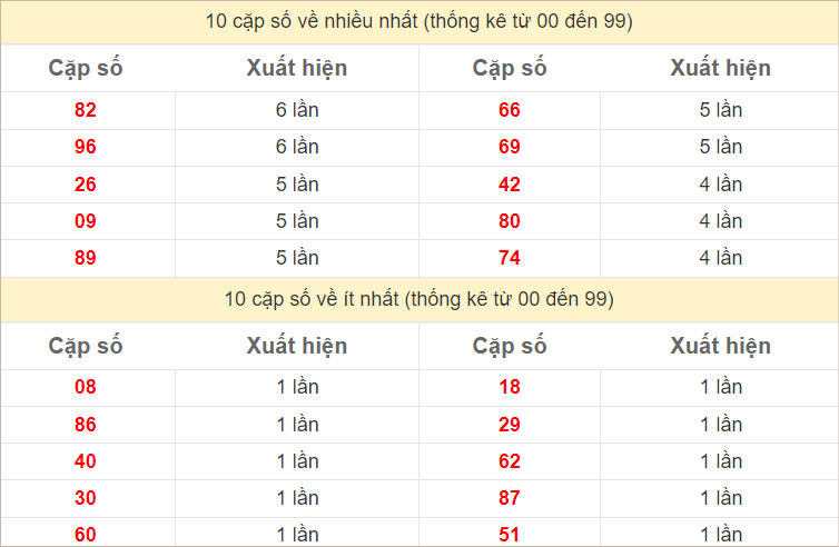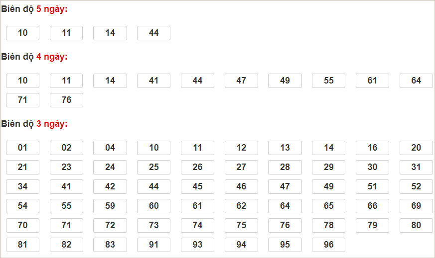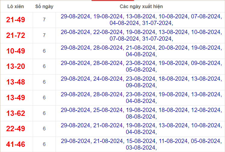 Cặp lô 14, 42, 47, 49, 61, 69 có độ dài 3 ngày.