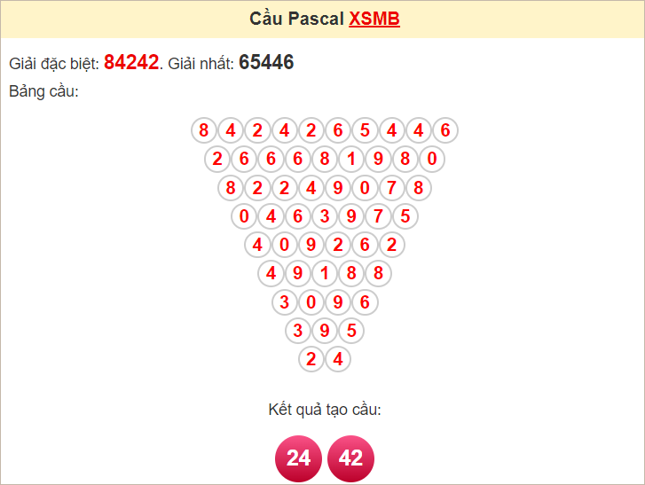 Kết quả từ soi cầu Pascale là cặp số may mắn: 24 42