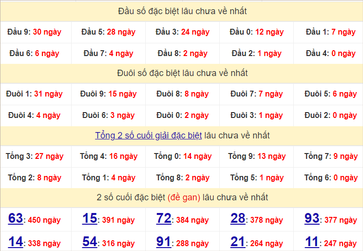 Thống kê hai số cuối giải đặc biệt miền Bắc ngày 30/8