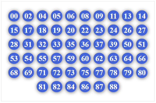 00, 01, 02, 03, 04, 05, 06, 07, 08, 09, 80, 81, 82, 83, 84, 85, 86, 87, 88, 89