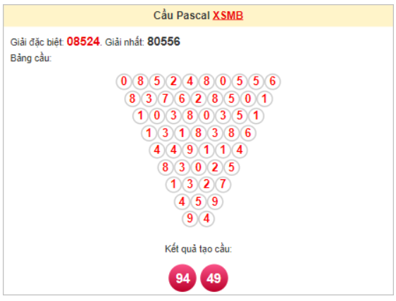 Kết quả từ soi cầu Pascale là cặp số may mắn: 49 94