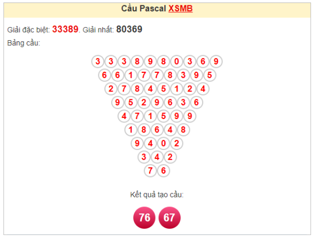 Kết quả từ soi cầu Pascale là cặp số may mắn: 67 76
