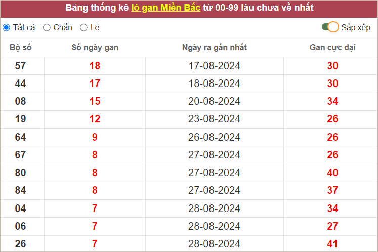 ⭐️Lô khan XSMB lâu ra nhất: 57 – 44 – 08 – 19 – 64