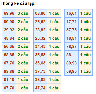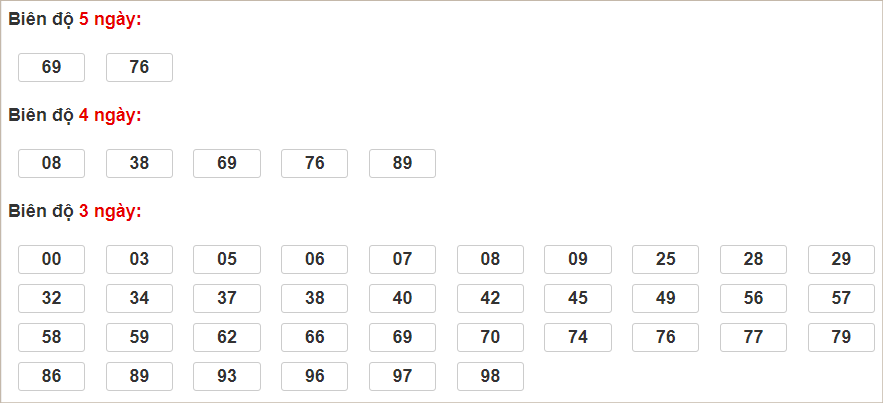 Cặp lô 00, 03, 05, 06, 07, 09, 30, 39, 50, 65, 66, 67, 69, 70, 75, 85, 89, 90, 95, 97, 98 có độ dài 2 ngày.