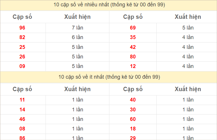 Các cặp số nóng nhất hôm nay: 21 – 91 – 95 – 12 – 25