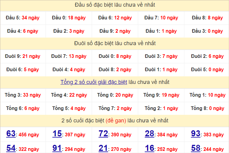 Thống kê hai số cuối giải đặc biệt miền Bắc ngày 5/9