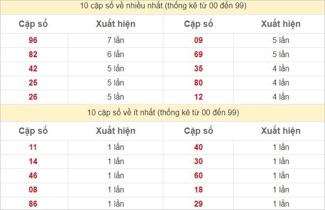 Thống kê hai số cuối giải đặc biệt miền Bắc ngày 7/9