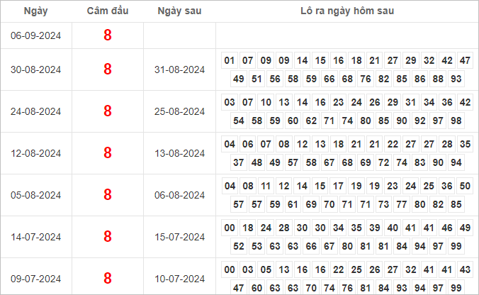 Dàn lô hôm nay miền Bắc bất bại ngày 7/9/2024